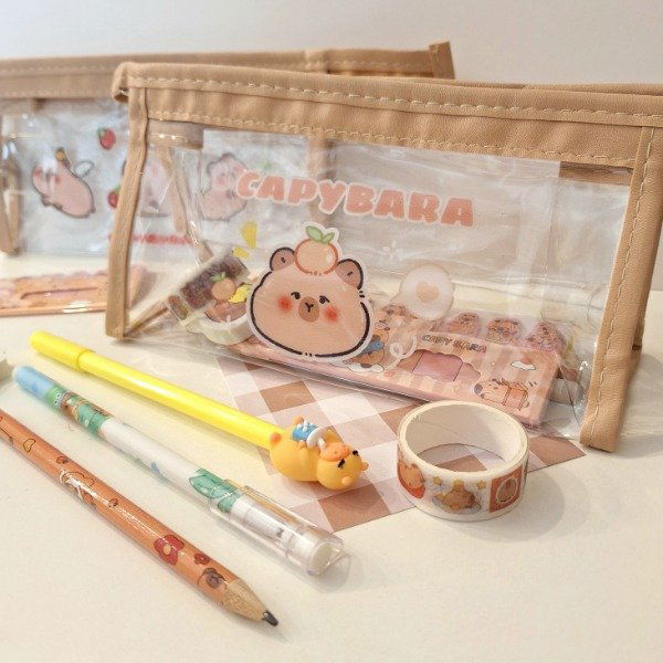 ¡El combo más cute y práctico para tu día a día! 🥰 Esta cartuchera capybara viene con todo lo que necesitás para organizarte con estilo: