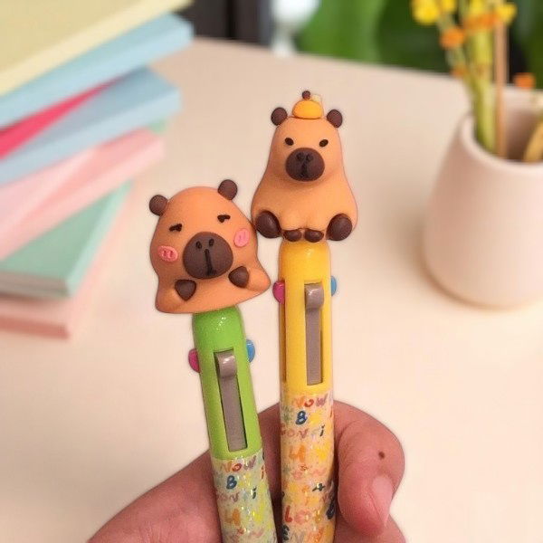 🌈 Lapicera 4 Colores Capibara 🖊️💚💙💖🖤