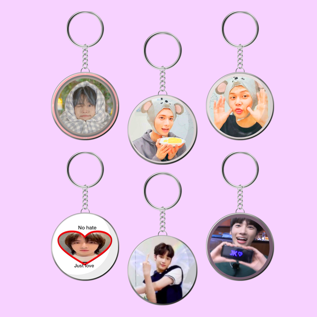 Llavero fanmade de TXT con diseño circular de casi 5 cm de diámetro, perfecto para llevar a tu bias siempre con vos!