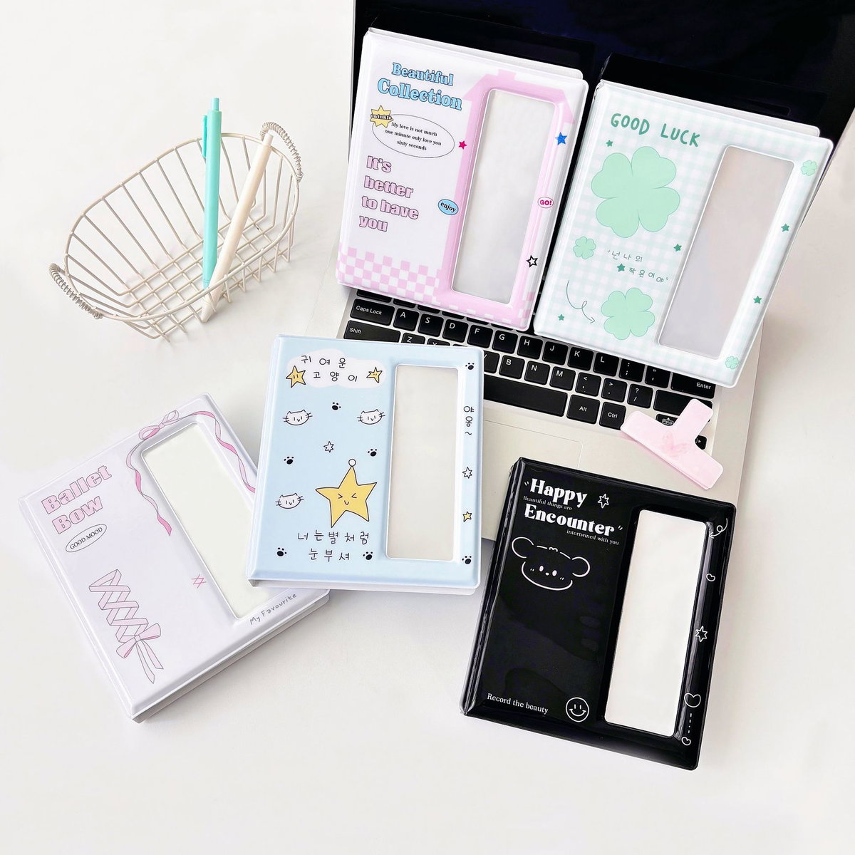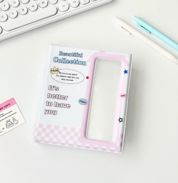 Este binder tiene 40 pรกginas internas, de las cuales 20 son para almacenar polaroids y 20 para postcards!