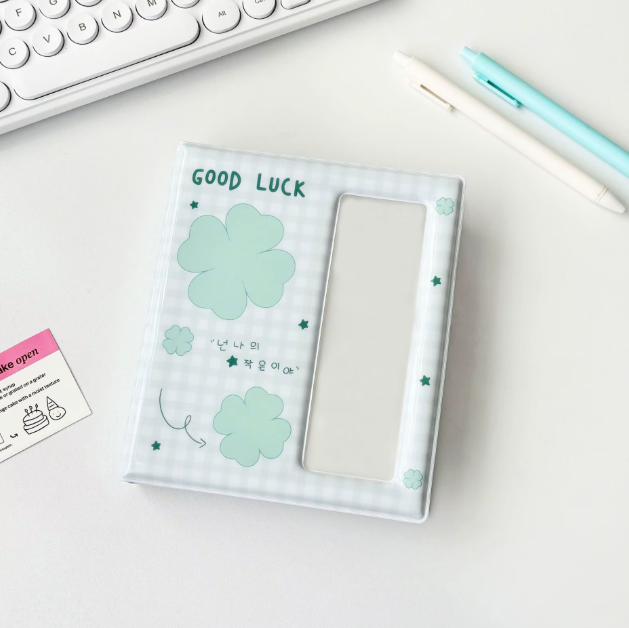 Este binder tiene 40 pรกginas internas, de las cuales 20 son para almacenar polaroids y 20 para postcards!