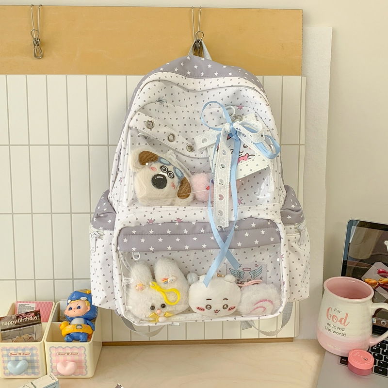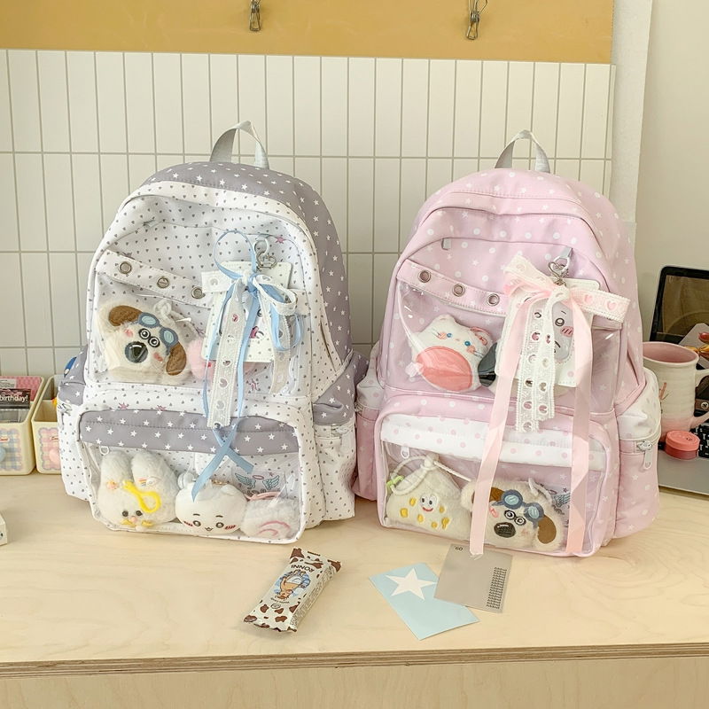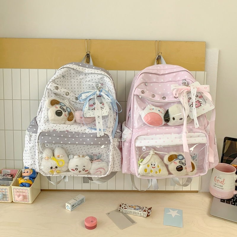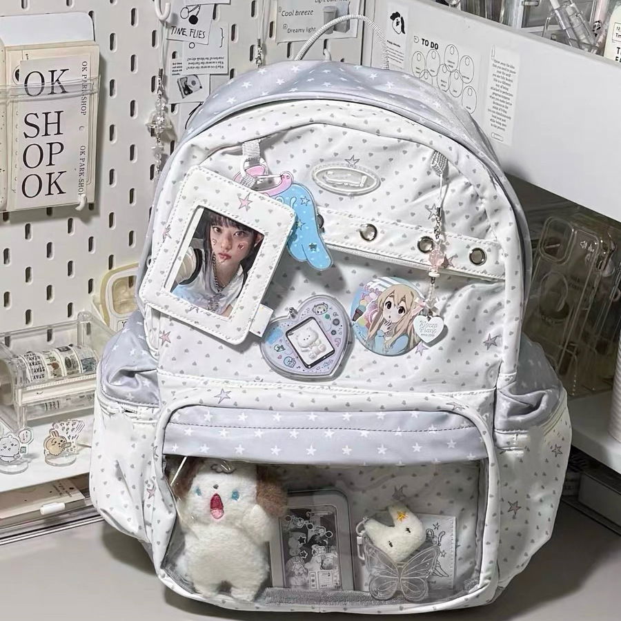 Esta mochila estilo k-pop combina diseño práctico con un visor frontal transparente perfecto para exhibir peluches, muñequitos o tu deco favorita!