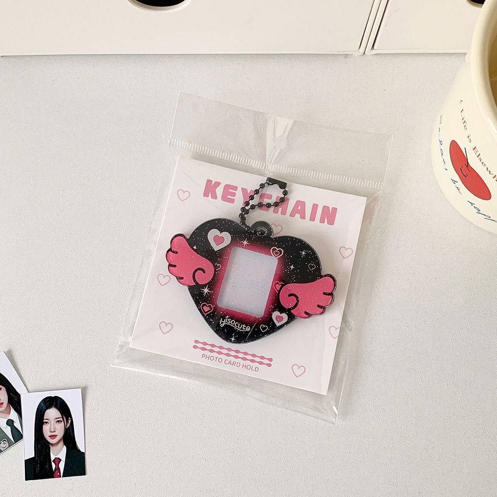 Dark pero tierno al mismo tiempo โจ Este holder negro con forma de corazรณn y delicados detalles de alitas de รกngel es perfecto para llevar tus pcs con un toque รบnico!