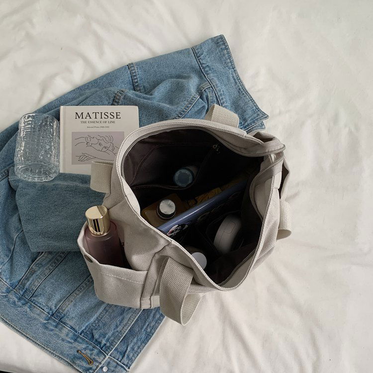 Práctica, elegante y lista para acompañarte todos los días 💭✨Esta bolsa de mano de lona resistente combina diseño minimalista con máxima funcionalidad.