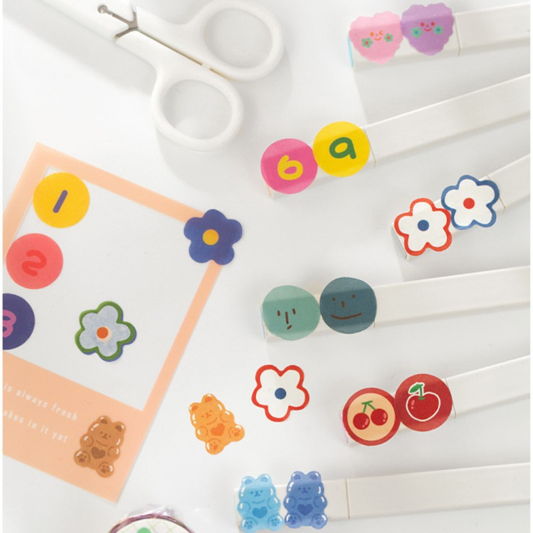 Un rollo lleno de mini stickers troquelados listos para usar uno por uno ✨ Perfecto para journaling, deco de photocards o manualidades creativas 💖